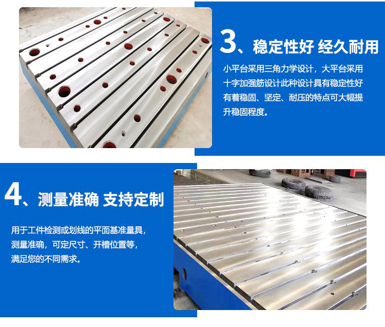 規格:100*100—3000*6000,(大于此規格的裝配平臺可以拼裝使用或按圖紙訂做。)